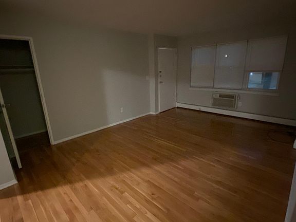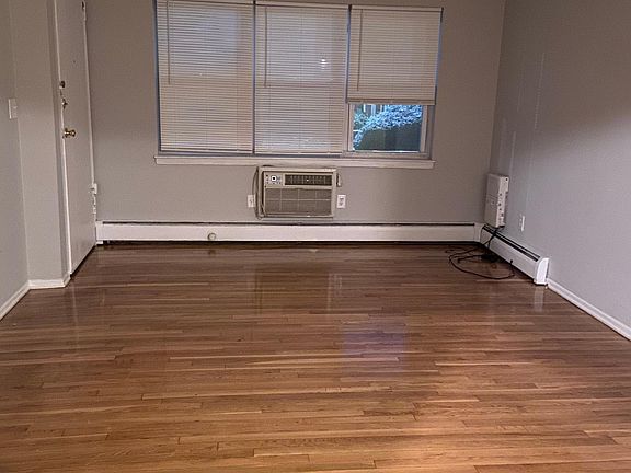 HEAT AND HOT WATER INCLUDED 1 bedroom 1 bath apartment + office/dining room 1st floor unit Over 700 square feet Separate entrance Hardwood floors throughout Kitchen comes with electric stove and fridge, no dishwasher Pantry Living room Wall AC units Bedroom can fit king sized bed Walk in closet Bathroom with full tub Shared laundry on site Off street parking 1 mile from train station Cat might be considered case by case *Photos are of a similar unit* *Realtor fee ($1680) due at lease signing*