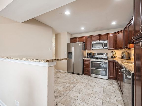 Welcome home to this stunning 3-bedroom, 2.5-bath condo that offers the space and feel of a townhome. Step inside to a dramatic two-story family room with soaring ceilings and large windows that highlight a cozy fireplace and flood the space with light. The main level features rich wood flooring, a gourmet kitchen with stainless steel appliances, granite countertops, and ample storage. Upstairs, the luxurious primary suite boasts dual closets and a bay window, complemented by a primary bathroom equipped with dual vanities. Complete with a 2-car garage including extra storage, this home seamlessly combines practicality and charm, creating a comfortable and inviting living space. Don't miss your chance to make this beautiful home yours!