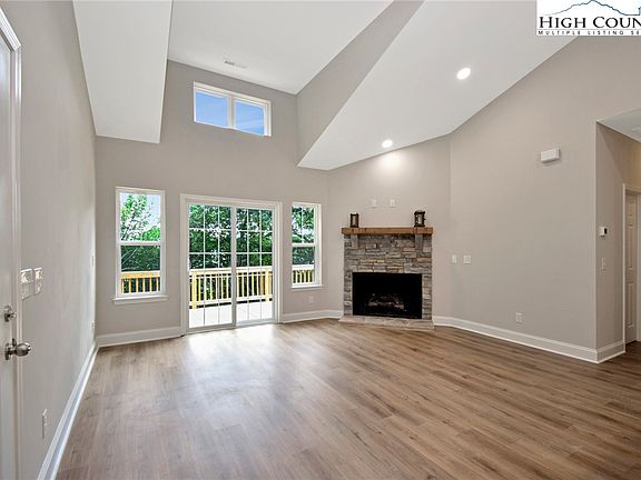 Introducing Brand New Construction, nestled in the Top of Boone subdivision—a gated community with a serene common area and pond—this exceptional home offers layered views with potential for further enhancement. Wake up to sunrise vistas from one end deck; later, relax as the sun sets at the other side. Inviting bright open floor plan, vaulted ceilings. Stay warm and toasty on winter nights w/stone fireplace rustic cedar mantle and gas logs. The kitchen comes complete with granite counters, custom pine island countertop, electric stove, dishwasher, and microwave (refrigerator not included). Partially furnished with a spacious king bed and full bedroom suite w/headboard. Durability & elegance of luxury vinyl plank flooring throughout the main areas, while plush carpeting enhances comfort in the bedrooms. Plumbing is pre-installed for an additional full bath in the basement, and the septic permit accommodates three bedrooms. The retaining wall has been installed. Newly concrete-paved driveway, fresh gravel to be laid in parking areas, that will enhance accessibility and curb appeal. Low-maintenance vinyl siding, ensuring ease of upkeep. Review the attached survey; the seller says the removal of a drainpipe from a neighboring property (shown in the survey) was done prior to the closing purchase of their lot. This prime location offers convenience w/proximity to Appalachian State University, local shopping, & fine dining—all just minutes away. Additionally, Appalachian Ski Mountain in Blowing Rock is within a short 10-mile drive. Attention to detail by the owners for personal use (not as contractors), this property represents a rare opportunity to own a custom-built home in a desirable neighborhood, allows short-term rentals. Taxes TBD.
