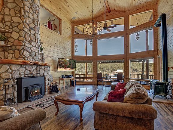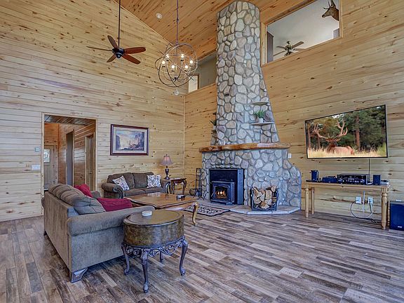 Absolutely Stunning 5BR, Loft and 3BA 3730+/- sq. ft. custom built home with a 2 ½ car garage. Nestled below the Majestic Mogollon Rim is the perfect mountain retreat. This is a rare gem! Interior features include an updated kitchen equipped with a double oven, 6 burner gas stove top, breakfast bar, island with prep sink, antique cast iron stove, beautiful granite counter tops, hickory cabinets and luxury vinyl floors on the main level. The great room is finished with beautiful white aspen walls and a vaulted ceiling, stunning floor to ceiling rock fire place with an alligator juniper mantel a Harman wood stove insert and a gas stove on the north wall will keep you warm in the winter. Looking west you will see floor to ceiling windows with a fabulous view of the meadow, seasonal creek and mountains. The master suite on the main level has 2 walk in closets, an updated BA and direct access to the hot tub on the deck. Potential steam room off the master is currently used for more storage. Laundry RM is on the main level with Samsung washer and dryer with plenty of storage, folding area and sink. The main level is handicapped accessible. All 4 BRS, loft and BA upstairs have large windows to take in the views. This impeccable home has an extra-large wrap around deck with mostly new Trex in 2019 that is partially covered, has a gas stub for the BBQ and has a pergola covering the outdoor dining area. There are tranquil views in every direction you look. The finished walk-out basement has a sink, plenty of storage and a paver patio with a seating area complete with a bar top with stools. There is a private well with a hand pump feature, a Nuvo water softener and generac generator connected to the house. New roof was completed in 2021. There are 2 large tuff sheds, medium tuff shed with electric and a pole barn. This magnificent 2 acre property is part of the original homestead in Colcord Estates and landscaped with 2 side yards, a back yard and a level game area for horse shoes, bocce ball ect. There is an outdoor fire pit for evening entertaining. This desired lot backs USFS that has been thinned for fire protection, fronts a gorgeous meadow with a seasonal creek and is at the end of the road!