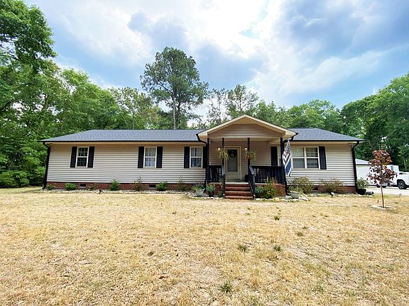 Want privacy? This is the one. This 3 bedroom 2 bath ranch home has loads of updates and sits on 3.02 wooded acres. Step inside to a very well maintained home that includes laminate hardwood floors in the living room, an eat-in kitchen with quartz counter tops/back splash, stainless appliances and pantry, Both Bathrooms have been renovated to include leathered granite counter tops, double vanities and fixtures. This 3 bedroom home also includes a flex room that would make a great office, laundry room with sink, a sunroom on the back and a covered patio for outdoor grilling. The roof replaced in 2019 and house is wired for backup generator. Outside includes a 25x24 garage, fenced back yard and tons of woods all around. It's also minutes from SJAFB.