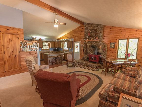 First time on the market! This private mountain cabin is still owned by the family that lovingly built it! 6 ACRES of peace and quiet await you at this 2 BR 2 BA cabin with the potential for knock out views! Cabin main level features 2 bedrooms and 1 bath, country kitchen with oak cabinets and a large island. Living/dining area with a gorgeous stack stone fireplace that features a wood stove for chilly nights. You'll love the little touches like cleverly placed cedar closets for storage and built-in shelving. Access the expansive deck from the living area to enjoy the outdoors and take in the winter views. Year round views more your thing? You could open it up for a potential 180 degree view! Lower level features a bonus sleeping area and full bath with tile floor. There's also a partially finished space that could be a family or rec room and the laundry area, garage and workshop space! Access to the outside leads to a lower terrace. There's so much charm on this property! It's so private, but not remote and there's a nice bit of usable land with a small meadow and meandering stream. Plenty of parking and close to town. This could be the getaway you've been waiting for!