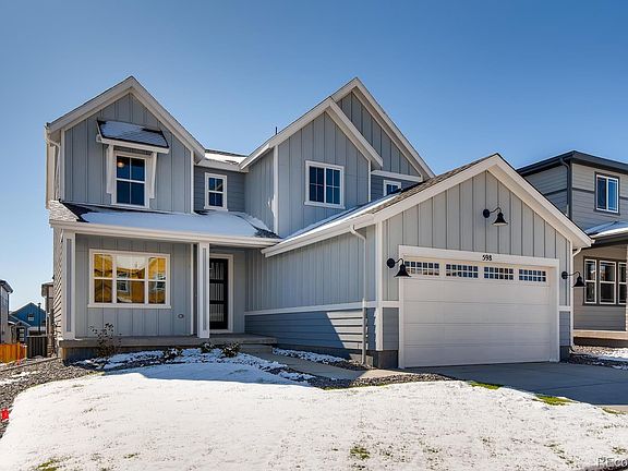 Modern Farmhouse charm with award winning floor plan! Main level guest suite with private full bath plus a separate main level office with French doors. 2' extended family room open to a large kitchen and covered patio! Master suite with coffered ceiling, 5pc bath and large walk in closet. Open rail along large loft and Full basement w/ 9' ceilings. Two tone paint, Utility Sink Rough-In, Lennox HVAC, Front yard landscaping included. Completion in August!
