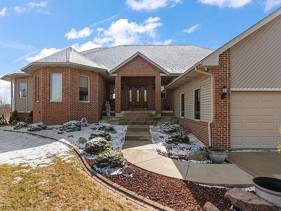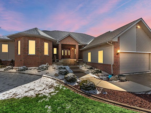 Acreage - Horses Allowed......3 Bed, 4 Bath Custom ranch home on 4.459 ACRES! Large kitchen and dining room, sun room with lots of windows to look at your empty pasture. Huge Primary bedroom with ensuite bathroom, 10' tray ceiling, and 3 closets (walk in). Primary ensuite bath has whirlpool tub, separate shower and double vanity. Main floor office with bay window. Harwood floors throughout main level and Main floor luandry with laundry tub. There is a second kitched adjacent to finished 3 car garage. Also a 2nd - 3 car garage attached to 1st garage. Zoned heat, Large covered patio and composite deck. Full walk-out basement finished with family room, workout room, and full bath and could be set up as a game room and bar area. Large unfinished utility room. Almost 3,000 sq feet on main level. 10 minutes from I 65. Right on Hebron/Winfield/Valpo border 10 minutes from everything you need. Country living but City Close!