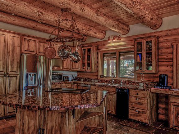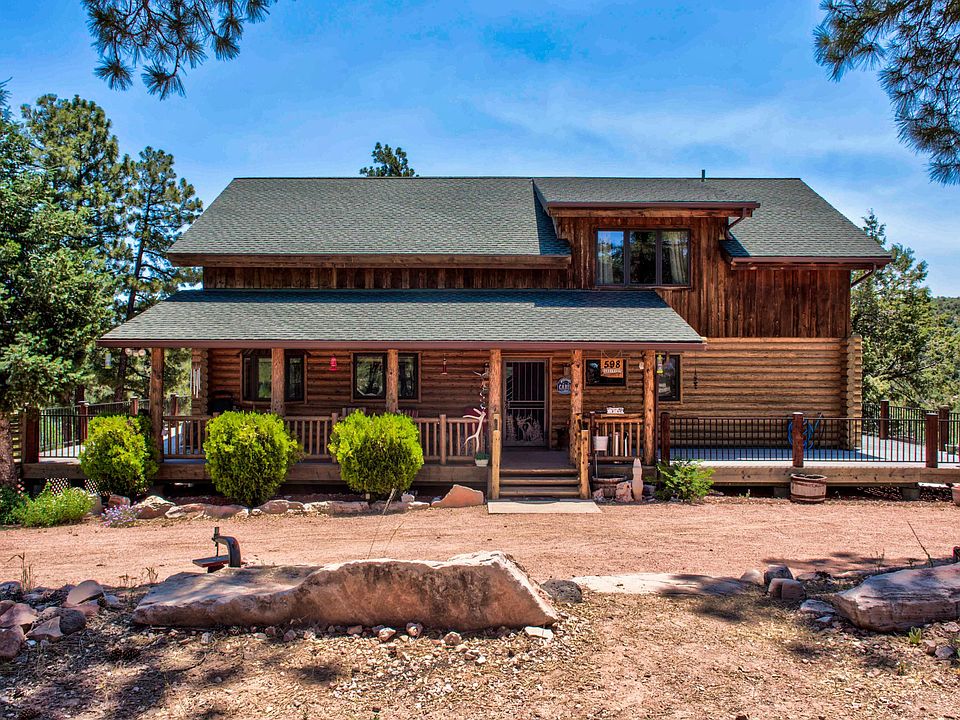 JUST REDUCED! Custom Log home on 1.40 acres next to National forest with 360 degree views of the Mogollon Rim. Private road and driveway with RV parking. No HOA. 4 bedrooms with office or bedroom, loft and 3.5 baths. Finished basement. Livable square footage is 3400. 8 inch Sweedish Cope hand peeled logs. All cabinetry and doors are solid Knotty Alder with Pella designer series windows. Custom lighting and mirrors throughout. 1800 sq. feet of Trex wrap around deck. The home has a 14Kw backup generator system, central heat and AC, 50 gallon water heater, RO system, 2200 Gallon water storage, pressure pump, grey water and standard septic. Kitchen has granite counter tops with glass backsplash and even a trash compactor. This custom beauty is one you dont want to miss out on.