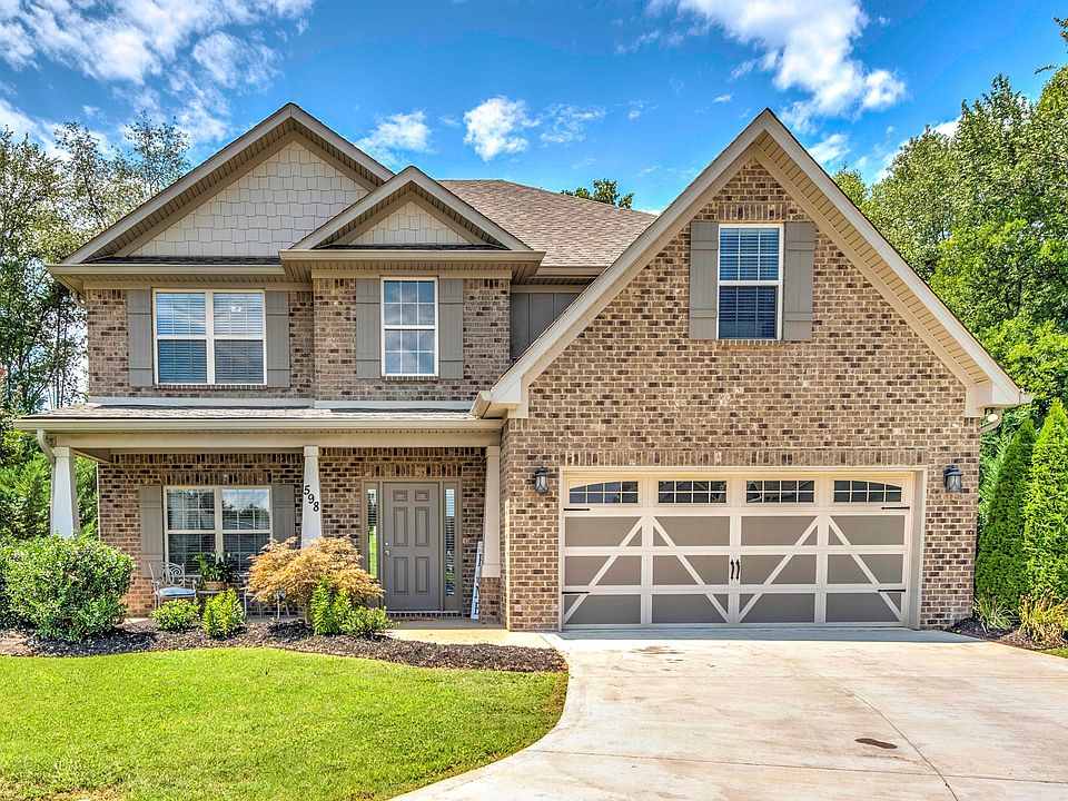 Beautiful all brick Craftsman style home located on a cul-de-sac in a family-friendly neighborhood! There is plenty of space to entertain in this open-floor plan home featuring c offered ceilings in the formal dining room and an additional dining space between the living room and kitchen. Other features include: stainless steel appliances, granite in kitchen and full baths and a ''drop-zone'' with built-in cubbies. A spacious master suite, 3 additional bedrooms and a full bathroom are all located on the second floor. Enjoy making S'mores on the covered back patio that also has a TV mount and fireplace. The back yard is the perfect place to relax and spend time together while the kids and pets play across the back yard.