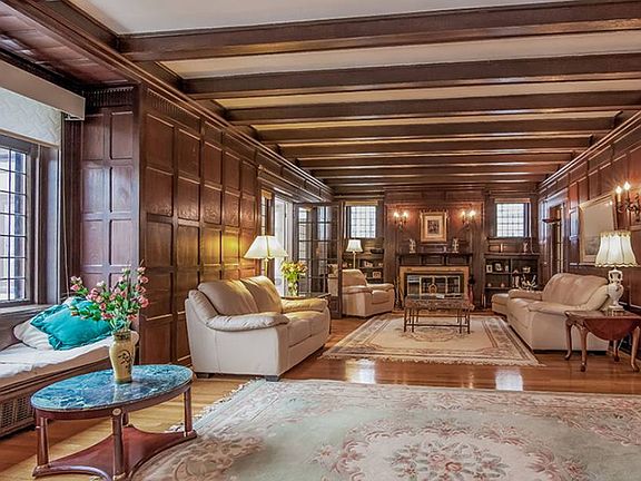 Stately Stucco Colonial with Fabulous views of Bulloughs Pond. Lovingly maintained for the past 30+ years. 14 rooms with 4 full baths & 1 1/2 . Lower level has 1000 sq ft updated au pair or in-law apt with 1.5 baths. There is also a 2 car garage & an in ground pool with hot tub.