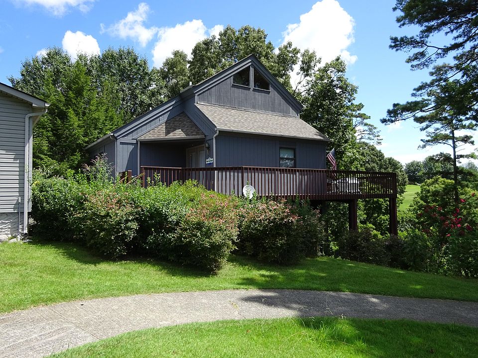 Wonderful Home overlooking # 6 Green. Four bedroom, (one used now as game room)Four bath home situated on a 0.44 acre lot with a two car garage. 2,184 square feet of living space. Entry level has great room with fireplace, dining area, kitchen, 2 bedrooms with baths and large walk out deck. Upper level is all master suite with jetted whirlpool tub and walk out deck. New shingles 2004, New Heat & Air. Lower level has game room/bedroom with bath, laundry and walk out deck. Views of the golf course and lake. Ready to move in and enjoy the lake! See Docs for Deerfield Fees.