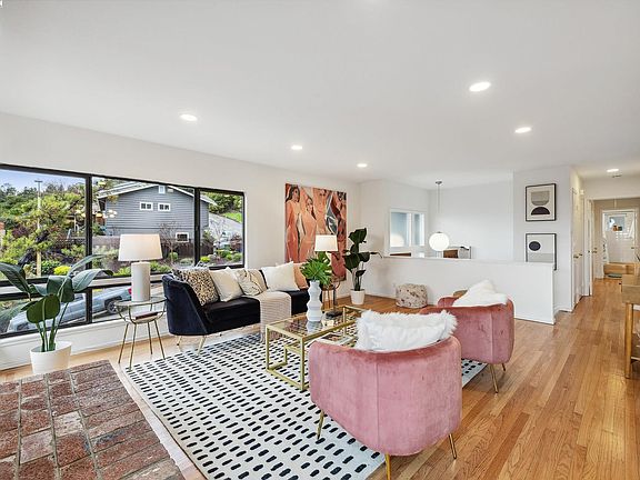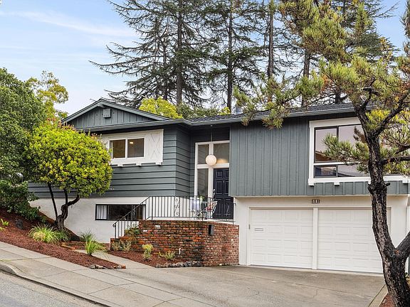 Stunning bay views and California living await in this classic Mid-century 3BR/2.5BA, 1942 SQFT home on a corner lot in the beautiful Oakland hills. From the impressive foyer, a short flight of stairs leads you to the bright great room with a cozy fireplace and large windows delivering world-class views of San Francisco and the Bay. Refinished hardwood floors span the house and the adjacent dining room with a pass-through to the spacious kitchen. Sliding glass doors open to a deck for an easy indoor/outdoor lifestyle. The backyard has mature landscaping, plenty of level room to play, and a patio area with built-in seating for entertaining. On the first floor, two bedrooms share a full bath, while the primary bedroom has an ensuite bath. Downstairs enjoy a giant flexible space with newer laundry, oversized half-bath, and sliding doors onto the backyard patio, offering possibilities for work from home, play, or future renovation. Lovingly maintained by the same family since it was built(!), recent upgrades include refurbished HVAC (2022), roof (2019), and new retaining wall (2021). The home has lots of storage and a 2-car garage. Out your front door, walk to playgrounds, hike in the East Bay Hills, or go down the hill for easy access to shopping and both Highway 13 and 580.