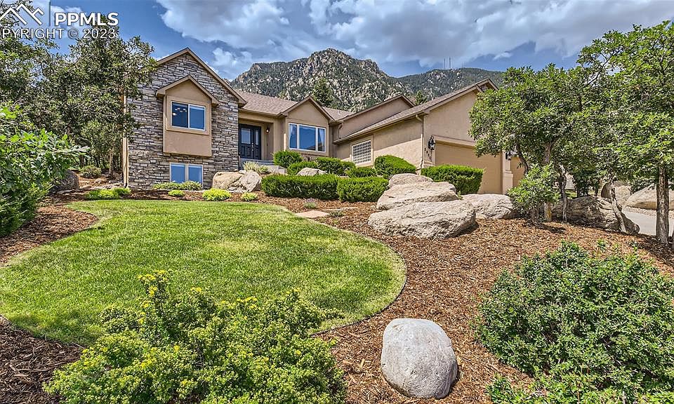Your MOUNTAIN GETAWAY in the city awaits in this STUNNER on Cheyenne Mountain! Spectacular Mountain Views and Amazing City Lights and Sunrise Views are just the beginning in this Impeccable Ranch Home sitting on almost half an acre. TRUE PRIDE OF OWNERSHIP is evident!!! This home features main level living with hard-to-find THREE BEDROOMS on the main. Extensive wood floors greet you as you enter that spread throughout most of the main floor. The formal Dining Room has big City Views and opens to the Vaulted Ceilings of the Great Room with stone fireplace and Gourmet Kitchen. The Kitchen has natural cherry cabinets, upgraded Kitchenaid appliances, granite and subway tile backsplash with a spacious eating area looking out to the special charm of the back yard. The WOW here is the view to the back yard with your own private waterfall feature and rock wall of flowers. Relax on your newly redone and private patio surrounded by pine trees and mountain views. A spacious Master Bedroom also walks out to the patio and features a large 5 piece bath with jetted tub and his and hers closets. Two more roomy Bedrooms can be found on this level with a Jack and Jill bath as well as a separate laundry room with loads of cabinet space. Don't miss the OVERSIZED 3 car garage with a storage closet for your convenience. On the lower level you will be delighted by a large Family Room with fireplace and convenient wet bar with mini frig and wine cooler. A great Theater room is tucked away on this level with all theater equipment included. You will also find 2 more bedrooms - one with an ensuite bath perfect for guests. The second bath downstairs features a steam shower for your own private spa getaway. PRIDE OF OWNERSHIP shines in this impeccably maintained and much loved home! Truly ready to move in and enjoy!!!