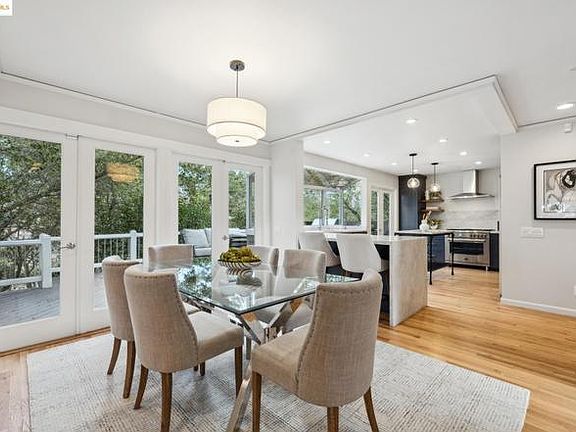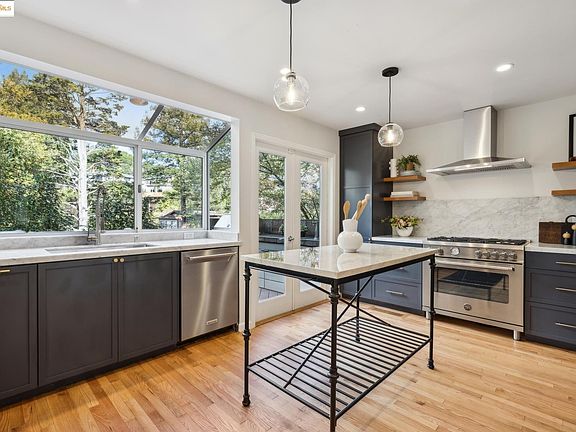 TO SCHEDULE A TOUR: calendly(dotcom)/nauerhahn/30min Located on an oak-studded hillside bordering Piedmont, this updated modern home offers a peaceful retreat with lovely garden spaces perfect for entertaining, and it's just a short 20-minute walk from the shops and restaurants of Montclair Village and Montclair Park. Additionally, a charming 20-minute neighborhood walk in another direction leads you to Piedmont Park. The expansive open-concept main floor flows effortlessly from the generous living room and dining area into a custom architect-designed kitchen, remodeled in 2019. Highlights of this space include custom cabinetry, beautiful marble surfaces, a 36" Bertazzoni range, and a wall of windows overlooking the spacious deck complete with an outdoor kitchen an ideal setup for hosting guests. An office and half bathroom are also located on this level. Upstairs, you'll find two well-proportioned bedrooms, two designer bathrooms, and laundry facilities. The large primary suite provides a relaxing sanctuary with a sitting area overlooking the garden and a private en-suite bathroom featuring a soaking tub. The third spacious bedroom, along with high-end wine storage and an oversized two-car garage, is situated on the level below the main floor. This home enjoys a convenient location near several parks and offers easy access for commuters, being centrally located between Upper Rockridge, Piedmont, and Montclair. Recent upgrades include a newer furnace (2019), AC (2021), tankless water heater (2022), and a new 200 amp panel with a Tesla charger (2019). Access to Montclair Elementary, the best elementary school in Oakland, adds further appeal for families. Renter is responsible for all utilities (gas, electric, internet, power, trash, water). 1 year lease. No smoking. Pet's okay with pre-approval. This home is not subject to rent control.