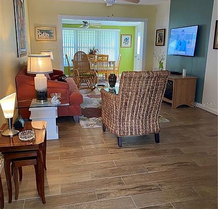 Check out this beautiful 2 bedroom/1 bathroom Villa situated in this well maintained, maintenance free, 55+ active community. This Villa has warm wood-looking ceramic tile flooring throughout, kitchen & bath updated 2016, washer and dryer inside the unit and open enclosed lanai. Newer double pane windows. There is a patio which can be screened in. Parkway Villas offers many amenities. A solar & gas heated pool, large clubhouse, shuffleboard courts, pool table, laundry facility and many planned social activities throughout the year. Ideally located between Bradenton and Sarasota. Convenient to shopping, restaurants, beaches and a short walk to the library. No trucks, RV