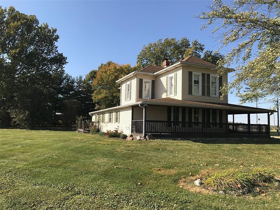 WANTED: SPOILED MAN WITH BOY TOYS! Put your boat, tractor, golf cart, 4-wheelers, camper & cars all in the 50 x 80 pole barn! Divided into 3 sections; office, kitchenette & bath all heated and cooled. 45 x 50 finished heated room with a loft for storage and a car lift. 28 x 50 unfinished area for equipment storage. 4-14' Overhead doors.House & barn are on 5 acres! 2,598 SF farmhouse with wrap around porch. Master bdrm on main level w/huge mst bath and a whirlpool tub. 3 bdrm upstairs, 3 full baths. Original woodwork and doors. Huge laundry room, mud room. Custom cabinets in the kitchen, island and huge pantry. Custom Transom windows. Home is a decorator's dream!! 21/2 car htd garage w/ breezeway. City water & well,200 amp srv.