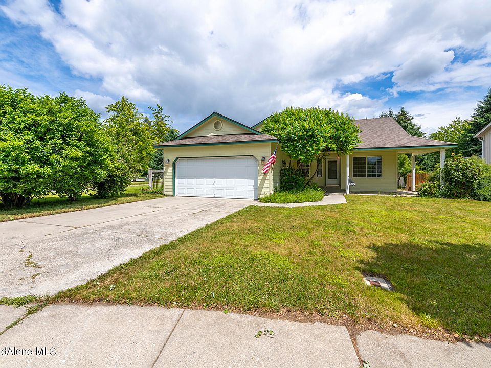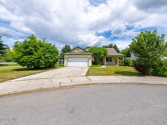 Solid 3 bedroom, 2 bathroom single level rancher in one of Coeur d'Alene's most desirable communities, Coeur d'Alene Place! Located on a cul-de-sac just minutes to shopping, dining and schools, and less than half a mile to the popular Bluegrass Park, this 1304 square foot home features vaulted ceilings, a spacious primary ensuite with walk-in closet and walk-in shower, large dining area and full bathroom for bedroom two and three. The fenced back yard features cherry, pear and apple trees, concrete patio and a storage shed to match the house. With sprinklers in the front, spacious driveway and no neighbors on two sides, this is an ideal location for enjoying the best of what Coeur d'Alene has to offer - great for a first time buyer or perfect as an ideal rental!