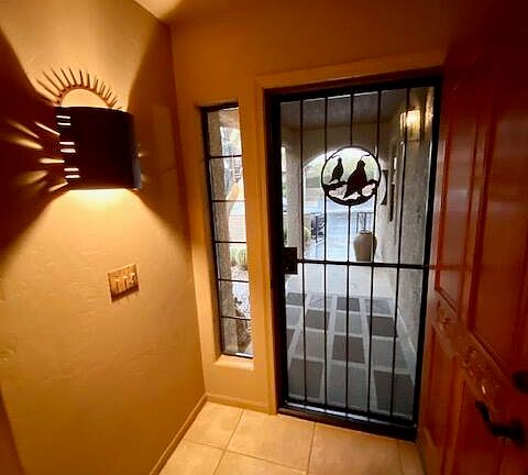 La Paloma Ridge 4! Don't miss this gem! Lovely architectural details throughout! Desert-scaped courtyard with gorgeous golden barrel cacti leads to beautiful covered front entry and decorative security screen door of this single story 2bed, 2 bath w/den, 1831 sqft home. Soaring ceilings and tiled floors bring flow and grace to the open spaces of this split bedroom floorplan. Be romanced by the double-sided fireplace, the indulgent garden bathtub and private side patio perfect for enjoying a morning cuppa. Find the respite of desert flora, fauna and mountain views from the NE-facing backyard patio. Additional highlights include Rojo's stained concrete kitchen counter, all appliances, 5 expansive sliding glass doors, utility sink, and newer roof, HVAC and H2O heater. Make it yours today.