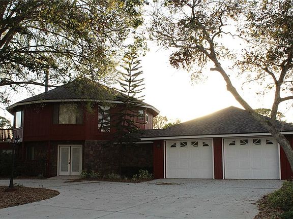 If you love unique architecture you will fall in love with this charming custom house in the round, well located in South Venice , just minutes to Manasota Key Beach. Relax on the tiled balcony after a day of beachcombing and sunning or enjoy one of the many private spaces in the home. The vaulted cedar lined ceilings are a great feature as well as the wood burning stove...A new roof was installed in August of 2017 and the house also offers a newer upgraded kitchen with stainless steel appliances and attractive wood cabinetry. There is a nice workshop area off the two car garage that offers plenty of storage. Mature landscaping and a circular drive welcome you to this lovely, very special place you can call home!!!!
