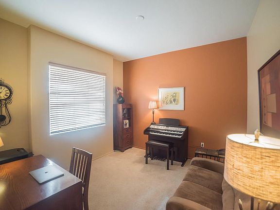 In a quiet, gated community, the superb Serrena Floor plan presents a marvelous open concept you will adore. Splendid southwest color palette throughout & ceiling fans that make every room pleasant & relaxing. The kitchen features a center island with breakfast bar, double sink, pantry closet & pull out shelves. The dishwasher & electric oven/range have been recently replaced. There is also a gas stub so you have the option to replace the oven/range with gas. The tile flooring is diagonally placed and the carpet is in excellent condition. Delight in a Peek -a- Boo Mountain View from the front entry foyer and the den/office. The covered back patio has roll down shades for added comfort. A spacious back yard is easy to maintain with a friendly neighbor who shares her oranges. Charming!