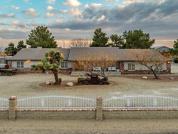 ***LIVE BEAUTIFULLY*** Welcome To Your Desert Oasis That Has A Main House, Guest House, And A Workshop On Nearly 2.5 Acres! Main house is 2,762 sq ft and features 4 beds and 3 full baths and the guest house/ apartment is 825 sq ft with a living room, kitchen, bedroom, and 1 and a half bathrooms. Designed for both comfort and functionality, the main house features four spacious bedrooms and three full baths, offering an open-concept layout with plantation shutters and custom cabinetry throughout. The kitchen is a chef's delight with granite countertops, stainless steel appliances, an abundance of cupboards, and a nine-foot breakfast bar that seats six. A pellet stove and used brick accent wall add warmth and character to the inviting living spaces, while engineered hardwood floors, a built-in vacuum system, an intercom system, and prewiring for an alarm system ensure convenience and modern living. The home is climate-controlled with central heating and air, along with a separate ducted swamp cooler system for added efficiency. The extra-large master suite serves as a private retreat, featuring a wood-burning stove, an attached office, an ensuite bath, and a spacious walk-in closet. The backyard is an entertainer's dream, boasting lush landscaping, four fountains, a waterfall, café lighting, Malibu lighting, and two streetlights. Two Alumawood freestanding patios provide shaded relaxation, while the complete outdoor kitchen features a built-in barbecue, refrigerator, sink with hot and cold water, single burner, and an ice chest. A deep pit barbecue makes this space ideal for hosting large gatherings. For those needing additional living quarters, the guest house offers one bedroom, a living room, a full kitchen, and one and a half baths, complete with a walk-in closet, stackable washer and dryer, a private entrance, and a secluded backyard with a fountain. The property is further enhanced by a separate three-car garage with two large doors (18 feet and 10 feet), a covered breezeway, and a half bath, as well as multiple access points with one automatic gate and three roll gates. RV owners will appreciate the two outdoor 30-amp breakers and two RV dump stations. The majority of the property is low maintenance with DG and A base. A standout feature of this estate is the massive 3,186-square-foot workshop, equipped with 18x14 slide doors, a 16x10 garage door with an opener, a 12k Onan standby generator with a smart panel, and a 220V air compressor. The workshop includes a spacious storage area with staircase access and a private 850-square-foot apartment featuring a full kitchen, living room, bedroom, one and a half baths, a private entrance, and a backyard with a fountain. This one-of-a-kind estate seamlessly combines luxury, practicality, and ample space for multi-generational living, business owners, hobbyists, or those simply seeking an unparalleled property with no HOA and no Mello-Roos. With meticulously designed interiors, extensive outdoor entertainment areas, and a fully equipped workshop, this home offers everything you need and more. Schedule your private tour today to experience this extraordinary property firsthand!