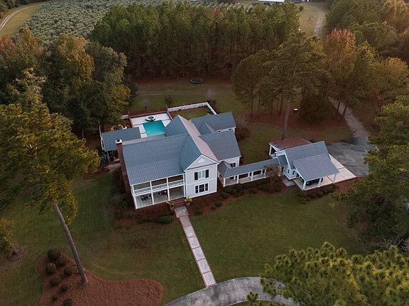 Beautiful Southern home on 37.14 acres in N. Lowndes Co.Nothing overlooked in this home. Multiple covered porches overlook the beautiful setting.12 acre pond,dock, fire pit. Gorgeous outdoor kitchen is a perfect gathering place with all the must haves for entertaining. SS appliances, heaters, fans, fireplace, heated pool and spa. 6 acres of young Olive trees, 10k income.5 bed, 5.1/2 baths, 4700+ sq. Feet. Fantastic finishes throughout. Heart pine flooring on main level. Great room features a true chef's kitchen. Beautiful brick overlay surrounding Viking gas stove, SS appliances, copper farmhouse sinks, tons of counter space, granite counters, island seats 5, hardwood cabinets with glass fronts. Large formal dining. Wet bar and butlers pantry.Master suite has sitting area, his/her vanities, sinks, and closets. Jacuzzi tub and tiled shower. 4 guest rooms, 3 baths upstairs and living room