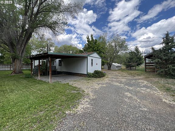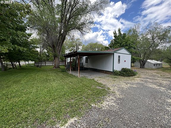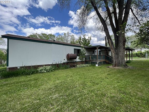 Great rental opportunity in John Day Oregon. Welcome home to this Beautifully treed landscape that is fenced to the East and West side of the property. Built in 1986, with 938 sqft the Kaufman Baywood singlewide Manufactured home offers 2 bedrooms, 2 bathrooms and .45 acres lot. Heat the home with a Electric furnace and heat pump or the oil Monitor stove. Bedrooms are on opposite ends of the home. The primary suite has a walk in closet and full ensuite bathroom. The Second bedroom utilizes the guest bath in the hallway. The Lot has irrigation rights from the Luce ditch. Property offers a carport off of the front door, a 20' x 40' barn with electricity, a 12'x 12' dry goods building with electricity and an open wood storage shed. Heat pump was new in 2022. Home is being sold in as is condition.