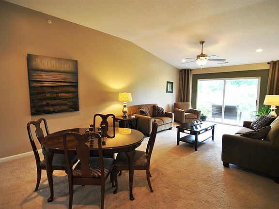 IMMACULATE/STUNNING UPPER LEVEL CONDO shows like a model featuring 2 bedrooms, 2 full bathrooms, large living/dining space, cathedral ceiling, open kitchen w/island, stainless appliances, washer/dryer, ceiling fans, covered deck with wooded view - HOA includes water/sanitation/trash, pool & clubhouse.