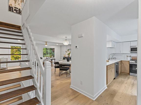 Welcome to this beautiful renovated END UNIT townhome with a full walk-out basement! Every color, piece of trim, light fixture, and tile has been hand-selected by an interior designer making this home one of a kind. As you step inside, you'll be greeted with brand new 28mil wide-plank LVP, ALL NEW WINDOWS, fresh paint, updated light fixtures, and updated plumbing fixtures. The kitchen has brand-new soft-close cabinets, quartz countertops that continue onto the backsplash, new stainless steel appliances, and a large peninsula that maximizes countertop space. Also on the main floor is a half bathroom, dining area, and a large living room with a custom accent wall. Upstairs, you have three bedrooms and two full bathrooms. The master bedroom is spacious with his and hers closets and a full bathroom attached. Downstairs, there is a large laundry room that doubles as a storage area, another half bathroom, and a second large living area with a wet bar and a fireplace! Off the back of the house is a private deck overlooking a creek. There's also a large opening with plenty of grass between this unit and the next building in case you have pets. Hot water heater is 2024 as well! Don't miss the opportunity to your this beautiful and unique home today.