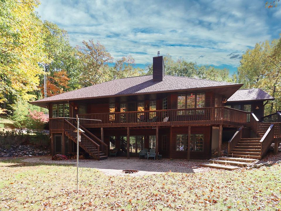 Granite counter tops thru out this gorgeous sprawling ranch with hardwood floors, tile & carpeting. Attached 4 car garage. Wow! Take a look at that Sun room. This is a turn key listing. Everything stays except for a few items. A fabulous dinning area overlooking East Twin Lk. Almost forgot. A butler pantry. A kitchen with Viking Refrigerator, Bosch dishwasher, double ovens to cook two turkeys for Thanksgiving. Huge foyer to greet your quests. Main floor laundry with plenty of space to fold your items. View that master bath in your master suite. This home is total quality. Oh Yes! There is another complete kitchen in the lower level to entertain family & friends. Gather around to a huge wood burning fireplace on those chilly nights. Walk out to a paved brick patio for a short walk to the waters edge. Also there is a gated easement to Bear lake just for residents in Interlochen Woods. Whatever I forgot to mention, you will have to see for yourselves. Privacy, tranquility at it's finest