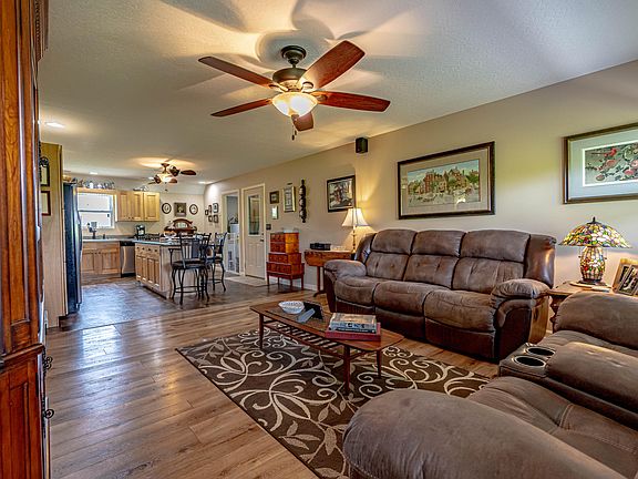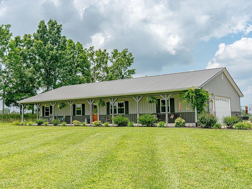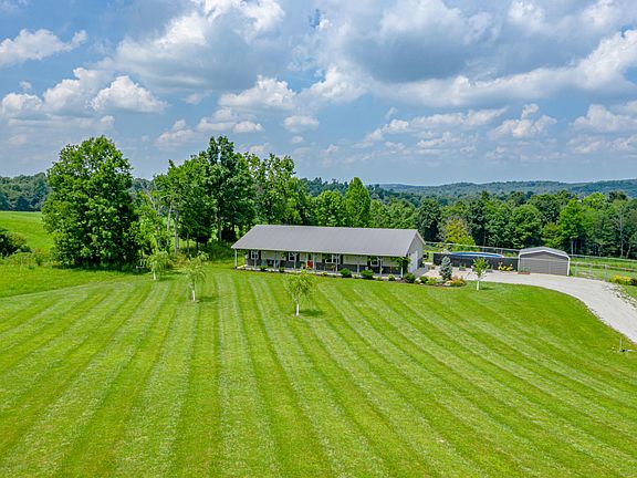 Just minutes from Nolin lake you will find this gorgeous 1784sqft 3 bed 2 bath ranch style home just about 5 miles outside of Leitchfield. Inside this pristine home you will find beautiful wood flooring throughout the main areas of the home, open living room with wired surround sound custom kitchen cabinets, large island, 2 guest bedrooms, master suite, large mud/utility room and a 2 car spacious garage that also includes a heated and cooled office! Outside this home has been professionally landscaped, 6ft fencing in the back yard for children or pets, above ground pool, detached carport, above ground planter garden and blackberry bushes! This entire home has been built with extra wide doors and large bathrooms to handle a wheelchair. Kitchen appliances remain. Stud framed on 16in centers.