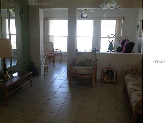 Move right into this well maintained two bedroom villa has ceramic tile throughout. Light and Bright. Open to Florida Room. Outside patio. Bathroom has step in shower with handicap handles. Central heat & A/C 6 years new. Electrical panel box replaced, kitchen has domed ceiling with fan replaced 3 year ago. Living room had hand troweled ceiling. New front door and storm door. Located near shopping, library, drug stores, restaurants. Low maintence fee: $210/mo includes: Basic cable, lawn care, heated community pool, recreation hall, outside building and roof. Must own 1 year before you can lease. No truck, No motorcycles and No pets.