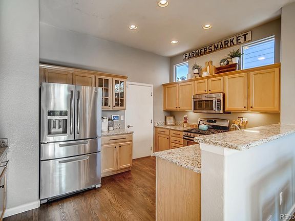 This beautifully updated ranch style home offers so many low maintenance and move in ready features that it is a must see on your list. The kitchen is spacious and open to the living area with abundant cabinets, granite counter tops and equipped with all stainless steel appliances including a gas range with double oven and french door refrigerator. The bright and open family room has large windows and gleaming newly finished hardwood floors. The main level also includes the master suite with private bathroom and the secondary bedroom with adjacent 3/4 bathroom. The home has been recently painted throughout to bring it up to date with modern, yet warm and soothing color tones. The hardwood floors were also recently refinished and the carpet is newer. New high efficient furnace and AC as well as water heater were all installed in 2019. The roof was replaced in 2018, 5" gutters added and the exterior was painted. The private back yard is low maintenance with turf, trex deck, stone fire pit pad and wired for a hot tub. The corner lot is adjacent to a large green belt area maintained by the HOA and the west facing home is on a cul de sac. How many boxes does this home check for you?