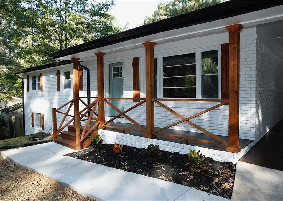 Charming, 4-sided brick home beautifully remodeled. As you enter, you'll immediately appreciate the inviting atmosphere of the intimate kitchen. It boasts sleek stainless steel appliances, brand new white cabinetry and elegant Quartz countertops. Featuring a spacious open floor plan, this residence boasts gleaming laminated floors throughout and two beautifully finished bathrooms. Enjoy the charm of custom handrails on the front porch and ample back deck and private wooded yard. Additional amenities include a versatile outbuilding perfect for storage or a workshop. Experience the perfect blend of elegance and functionality in a serene, private “Cul de Sac” New HVAC unit installed in 9/2024.. NO HOA, conveniently located near schools, shopping, dining, Hwy 78 and I-20, this home makes for easy commuting and access to all amenities, is MOVE-IN READY.