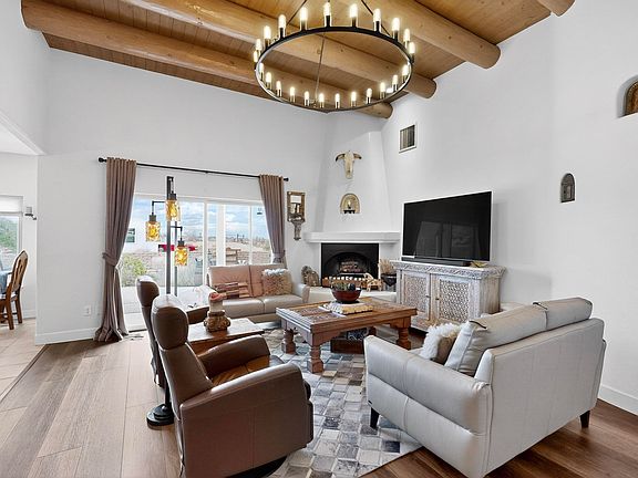 This charming New Mexico Pueblo-style home captures the true essence of the Southwest, offering expansive views of the Sandia Mountains, where breathtaking sunsets bathe the range in shades of pink and watermelon. To the north, catch glimpses of the distant Santa Fe mountains, and each fall enjoy a front-row seat as the world-famous Albuquerque International Balloon Fiesta drifts gracefully overhead--an unforgettable experience for family and guests. Arrive in style along a freshly sealed asphalt driveway leading to a private, stucco-walled courtyard. The highlight of this property is the newly built 850 sq. ft. heated and cooled workshop, offering endless possibilities for hobbyists, makers, and professionals alike.