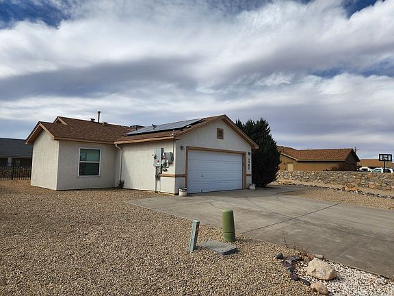 5983 Moon View is NOW Available! This spacious 4 bedroom, 2 bathroom home is perfect for those looking for a pet-friendly environment with a large fenced backyard. Enjoy the convenience of refrigerated air conditioning, making those hot summer days more bearable. With easy access to WSMR, NASA, and highway 70, commuting is a breeze. The large covered and gated patio is perfect for outdoor entertaining, while the included solar panels help reduce energy costs. Inside, you'll find ceiling fans in all rooms, a washer and dryer for added convenience, and walk-in showers in each bathroom. Plenty of storage space is available with lots of closets and shelving, along with a storage shed for extra belongings. Don't miss out on this fantastic home in a great location!