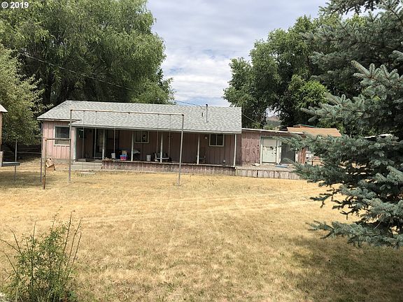 3 bedroom 1 bathroom home 1368sqft, home sets on a large lot. Fenced back area, room for a horse or 4-H animals, lots of outbuildings,animal shelter, pump house. Irrigation ditch runs in front of home. Pull through driveway from Hwy 26 to Screech Alley, great for pulling trailers through. Fruit trees. Woodstove & oil monitor heater.