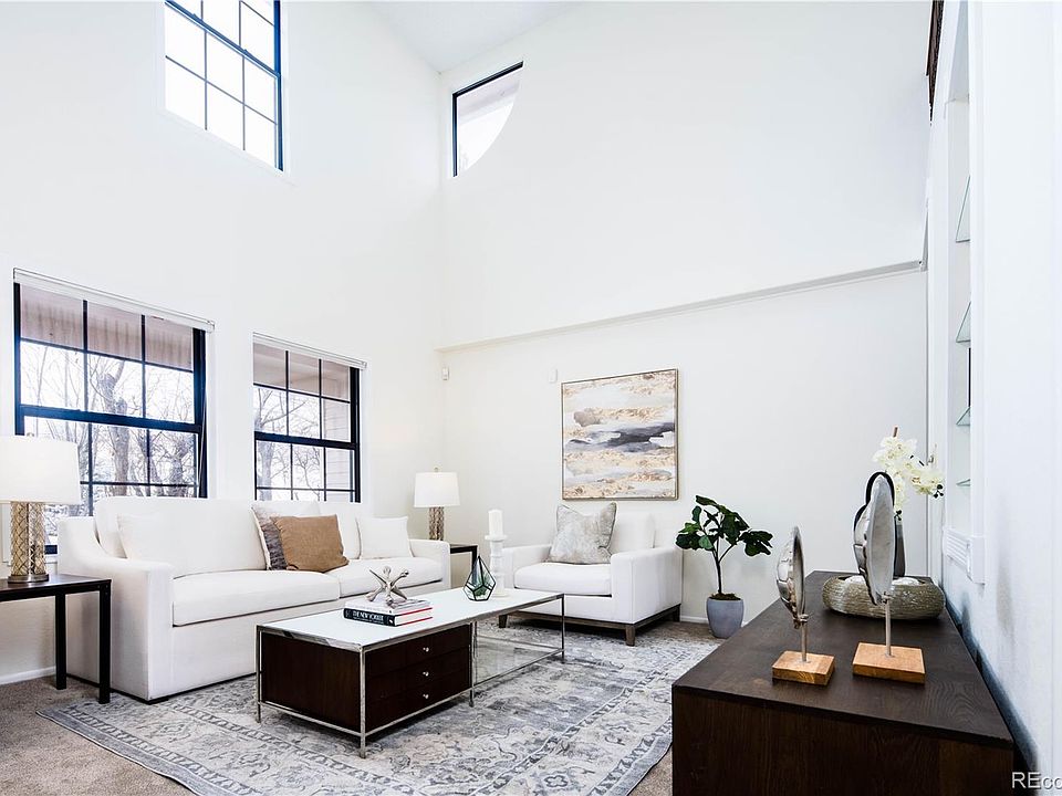 Traditional two-story home within the highly sought-after Greenwood Village South Neighborhood of Centennial. Teeming with infinite potential, the massive lot is adorned with mature landscaping and bordered by a stream to the rear, while a charming front porch invites visitors into a space with freshly painted walls and newly laid carpet throughout. An impressive 2-story foyer crowns the living room aglow with soft natural light and merges with the dining area and simple, yet efficient kitchen. Work space and high-top seating add interest to the kitchen, while a family room with brick-surround, gas fireplace and doors to the enclosed sun porch and yard soothe the appeal and make for a cozy, fireside retreat. Opposite the kitchen is a full-bath, as well as window-filled primary suite with tile-surround shower and dual sinks; plus, a walk-in closet. Stairs near the front-entry climb to four brightly-lit bedrooms and two bathrooms. Additional living space in the basement yields a promising rec room with wet bar, ¾-bath, flex space and storage space. Greenwood Village South boasts many parks, trails and open-space, and is within close proximity to I-25 for travel throughout the Denver Metro Area.