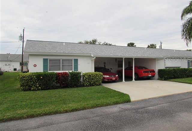 Price Improvement on this Large, End Unit, with 2 beds and 1 bath in centrally located Parkway Villas. This unit features ceramic tile throughout, and a 10x14 addition that was completed in 2000, adds extra space making this unit one of the largest 2/1 villas in the complex. From the moment you walk in, you will notice that the extra windows make this condo feel light and bright and will blow away any dark and dull interior units. The kitchen is located adjacent to the dining area and has a separate entrance that leads to the carport. Both bedrooms are good sized with walk in closets. There is a nice walk in shower in the bathroom and best of all there is a washer dryer in the second bedroom closet. Take the 3D virtual tour and walk through the unit! The carport is at the front entrance and there is a small concrete patio off the back of the unit. This is a popular 55+ community with reasonable HOA fees that include roof, cable TV, internet, community pool, clubhouse, grounds maintenance and common insurance. Parkway Villas is located in the Bayshore Gardens area which offers proximity to US 41, SRQ airport, IMG Academy, beaches, shopping, restaurants, and all area amenities. Residents love the affordability of the low monthly fees of $283 and the active 55+ community. No rentals are allowed until an owner has 2 years of ownership. No trucks, RVs, or motorcycles are allowed and there is a no pet policy. Overall, this is a great unit that would be a perfect full time or part time residence. If you are looking for a ground floor villa, with a little extra space, then add this one to your list and see it first!