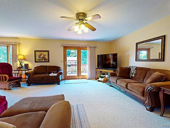 Once you walk into this custom built 4 Bedroom, 2 Bath Ranch you will fall in love with it. Enjoy the open floor plan, large kitchen with a ton of cupboards and countertop space. All Appliances stay with the home. Relax in the living room over looking the 3 tiered deck and backyard. This home has a separate dining room and den area.Well kept, maintained and loved. The 2 x 6 construction allows for more insulation which keeps the utility bills extremely low. Attached 2.5 car finished garage withgarage door opener and side entry. This home sits on 2 acres of land with a 30 x 40 pole barn with workshop, new metal roof and electric.