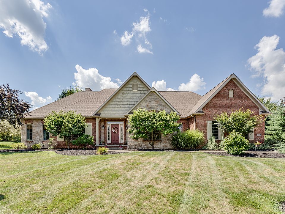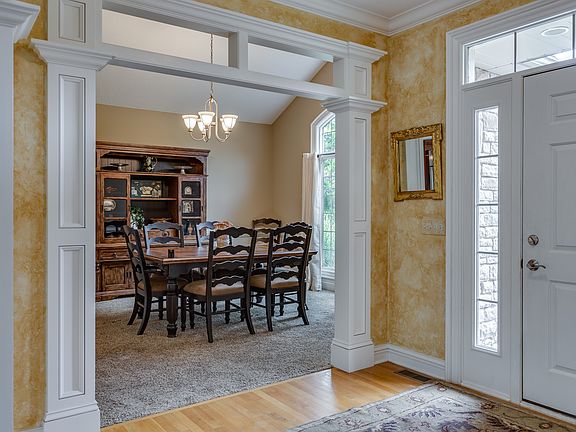 Great location in Carrington Estates. Many Custom details from vaulted ceilings and catherdral ceilings, wood beams, floor to ceiling stone fireplace, hardwood floors, walls of windows, and most replaced. Open floor plan. Beautiful shrock kitchen with granite counters , viking appliances, walk in pantry. Split Bedroom design for master suite privacy. Sun room off kitchen to patio, ideal for large gatherings. The lower level finished with bar, wine cellar, rec room, full bath,work out room, and 5 hole putting green. Great opportunity