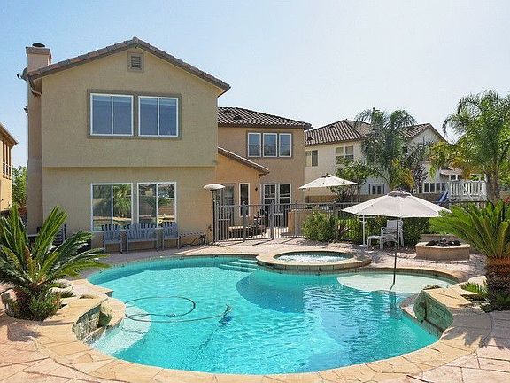 Looking for a bright, spacious home on a large lot with a pool? Here is your answer! Situated on a dramatic cul-de-sac w/gorgeous views of the East Simi hills, this 5 bedroom, 3.5 bath home has plenty of space inside and out. Dramatic 2-story circular entry; large kit w/granite counters, island/bfast bar & full backsplash, walk-in pantry. Roomy fam rm w/fp, media niche & views. FDR w/views & French doors. Dwnstrs playroom/5th bdrm + a bdrm w/private bath - perfect in-law suite. 2 upstairs lofts; bright master wing w/wonderful views & huge master bath w/dual sink areas, vanity area, leaded-glass windows & huge walk-in closet. Now for the best part - the backyard: Built-in bar w/granite slab counter, glass tile backsplash, BBQ, and more, w/room to seat at least 8. Gated pool w/Baja step, waterfalls, oversized spa & lots of patio space on lower and upper levels, firepit, plus large grassy play area complete w/sandy-bottomed play gym & gated dog run, near golf courses & hiking trails.