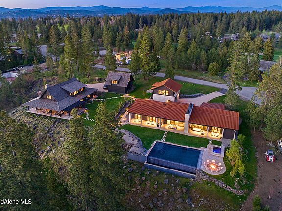 Estate 71 is nestled in the heart of Gozzer Ranch on a private cul de sac, this home has unparalleled views of Lake Coeur d'Alene and the 8th fairway of the Tom Fazio Championship Golf Course. Included conveniences such as the pool bath and extensive pool storage area for towels and toys along with motorized pool and spa covers. Impressive outdoor living space including fireplace, exterior patio heaters, and fire pit provide the perfect ambiance for any occasion. The extended patio with a built-in grill. Large sliding glass doors allow for effortless indoor / outdoor relaxation and entertaining.