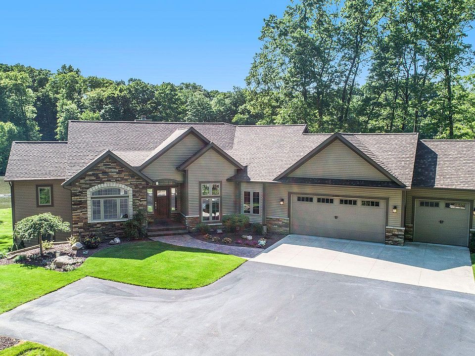 BETTER THAN NEW Gorgeous 1.8 acre Ranch with 150 ft of private waterfront on the Thornapple River. You can cruise for miles down stream all the way to the Cascade dam in your boat, pontoon or personal watercraft. Located in the upscale neighborhood of Thornapple Trails. This scenic tranquil neighborhood is located in Cascade township and in the blue ribbon Caledonia school district. Custom built in 2014 Ranch includes MANY upgrades & amenities. Home has been meticulously maintained & loved. Much thought and expense went into all of the extras. High Energy Efficiency Plus foam insulation between both interior & exterior walls. A 2 stage furnace to control temp between main floor and walkout. Composite Deck & attached Shed. Don't miss the attic storage in the 3 stall garage with steps