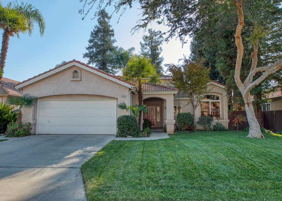 This beautiful 3/2 is located in the Hampton Greens Subdivision and is walking distance to the Riverside Golf Course and San Joaquin River Parkway Nature Trail. The home has gorgeous curb appeal and upon entering the home you are welcomed with lots of ambient lighting provided by vaulted ceilings, arched openings and big bright windows. The great room includes a dual-sided gas fireplace with slate hearth and a custom-built knotty-pine entertainment center that is pre-wired for surround sound. The eat-in kitchen has been updated with high-end, stainless appliances and you will find energy-efficient dual-pane windows throughout the home along with Pergo laminate flooring in the main living areas. The main bedroom has generous-sized walk-in closet, custom en-suite bath with large, jetted tub, Travertine stone vanity and hand-chiseled porcelain tile. Along with bedrooms 2 & 3 having custom walk-in closets, there is a home-office with a custom-built oak desk and cabinetry. The backyard boasts a large covered patio and fully insulated and finished playhouse/garden shed. Enjoy picking your own fruit in this park-like backyard from the dwarf fruit trees including apple, nectarine, lemon, orange and more. The 2-car garage also includes an 8' solid surface cabinet, cast-iron utility sink and 12' of floor to ceiling storage cabinets.