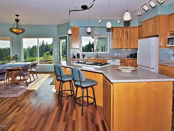 Exceptionally elegant and lovingly maintained home with exquisite gardens and glorious views that will delight you forever more! Set upon a hillside overlooking Kachemak Bay, you'll adore the serenity of this private spot located only 5.5 miles from downtown Homer. Ranch-style living with a daylight basement for guests, office and hobbies. 2.38 acres in one of Homer's very finest neighborhoods! Custom features include: high-end steel siding, South American Jatoba hardwood flooring, Quad-Lock foundation, TREX decking, oversized septic and a generator/electrical transfer switch. Lots of dry storage space, huge 3-car garage. Large downstairs bedroom plumbed for kitchenette. Extensive perennial gardens and landscaping. Gardens include raised beds, artistic gates and moose-proof fencing. Developed spring on property for watering lawn & gardens. Home featured twice on the Homer Garden Tour.