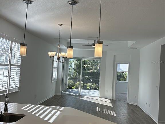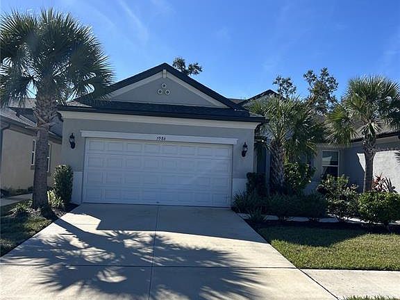 Welcome to Amberly- a cozy, maintenance-free community! Discover the perfect blend of comfort, coastal living and convenience in this move-in-ready 3-bedroom, 2-bathroom villa with a 2-car garage. Located in the sought-after gated community of Amberly, this M/I home offers a low-HOA, no-CDD, maintenance-free lifestyle just minutes from I-75 and the beautiful Gulf Beaches of Anna Maria Island. Go inside the inviting foyer that opens into a spacious living area with high ceilings and ceiling fan, plantation shutters and ceramic tile floors throughout the main living spaces. The modern kitchen features cabinetry, quartz countertops, pendant lighting, stainless steel appliances, and a walk-in pantry. Enjoy your morning coffee or evening relaxation on the screened lanai with sun shade overlooking a private backyard with wooded views offering peace and privacy. The primary suite includes a walk-in closet and a luxurious ensuite bathroom with a double vanity, quartz countertops, and a walk-in tiled shower with bench. A second and third bedroom can share a full bath with a tub/shower combo. A spacious laundry room with shelving and rarely used Washer and Dryer included leads to a 2-car garage featuring epoxy flooring and storage space. Residents of Amberly enjoy access to a beautiful heated community pool, scenic pond views, and the ease of maintenance-free living.