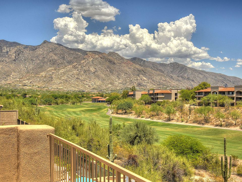 * Premier ''Fairway Villa'' in Villages of La Paloma. This 4 BR & 3 BA w/Gym or Office Offers Commanding City, Mountain & Golf Course Views. Fine Features Include: Open-Great Room Floor Plan,Vaulted Ceilings,Custom Concrete Floors,Solid Wood Plantation Shutters,Enormous Custom Built-In Framed Mirrors,Spacious Island Kitchen w/Upgraded GE Cafe Stainless Appliances (+Gas Range),Blanco Sink,Breakfast Area+Bar,Great Room w/Fireplace,Open Dining Room.Upstairs Master Suite w/2 Walk In Closets & Big View Balcony.Exterior Motorized Solar Screens On East Side of House,Garage w/Epoxy Floors & Overhead Storage.Private Outdoor Living Area w/Covered Flagstone Patio,Artificial Grass, Fireplace,Restoration Hardware Fountain, & Stellar Views! Ideal Central Foothills Location. Manned Gate. Community Pool/Spa
