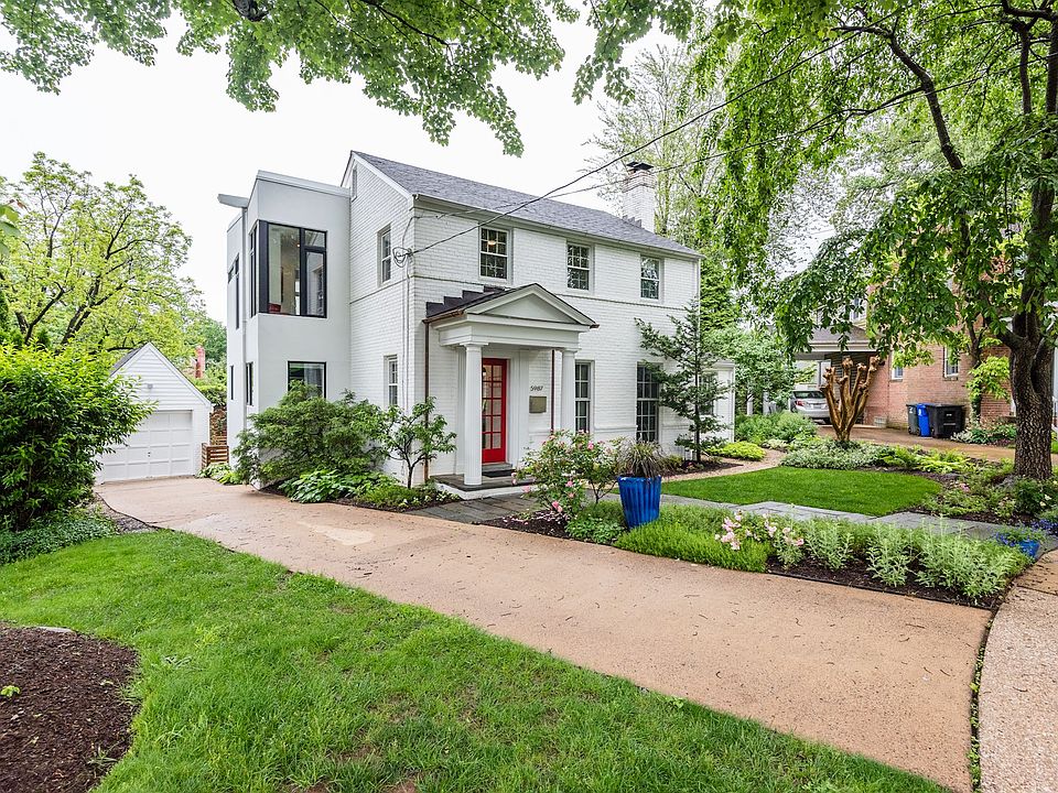 In 1993, after looking at what seemed like 100 homes, the owners found a classic Arlington post-war Colonial home. The husband, an architect, saw that it had good bones ~ an open floor plan with spaces that would support a future family. Over the next 26 years they renovated the house from top to bottom. First on the list was a new kitchen, then the second floor with the arrival of their first child, the basement with the second and finally a two-story addition, front porch, first-floor renovation and front and rear hardscape and landscaping.Wanting to respect the traditional design of the original house and the neighborhood, the front porch was designed utilizing the proportions of classical architecture and the living room windows were extended to the floor to match the size of the front door and bring light into the front of the house. In the rear, modern design was given full reign with simple forms composed from cement stucco siding, black-framed windows and a copper clad wrap around bay window. The first floor provides a light-filled family room and similarly open master suite on the second floor with views of the skyline in Ballston two miles away. A new kitchen with blue foil faced cabinets, light colored Corian countertops, double oven, stainless steel appliances and Viking cooktop completed the project.