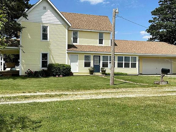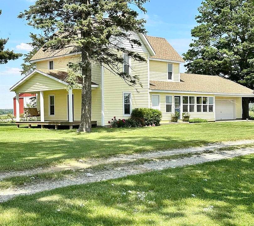 Nestled on 2.39 acres, this delightful farmhouse blends rustic charm with modern comforts, offering a perfect setting for homesteading enthusiasts. The interior of this house is filled with abundant natural light and original woodwork. Galley kitchen featuring a breakfast bar and walk through pantry. Also found on the first floor are the formal dining room, full bathroom, laundry room and two additional living spaces. Located upstairs is a second full bathroom, large primary bedroom and two additional cozy bedrooms. New front covered porch and siding installed in 2024, enhancing curb appeal and energy efficiency. Outbuildings include a large chicken coop with electricity, barn, machine shed with electricity, hydrant and partial concrete floor, and a grain silo. North of the house is a fruit orchard including multiple varieties of apple and cherry trees. Additional established fruit such as red raspberries, black raspberries, blackberries and grape vines. This property offers a serene rural lifestyle with all the amenities needed for self-sufficient living. Whether you're looking to cultivate your own food, raise animals, or simply enjoy the tranquility of country life, this farmhouse is a must-see. *Listing Agent is related to the Seller.