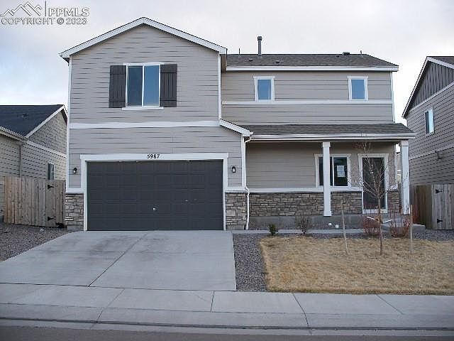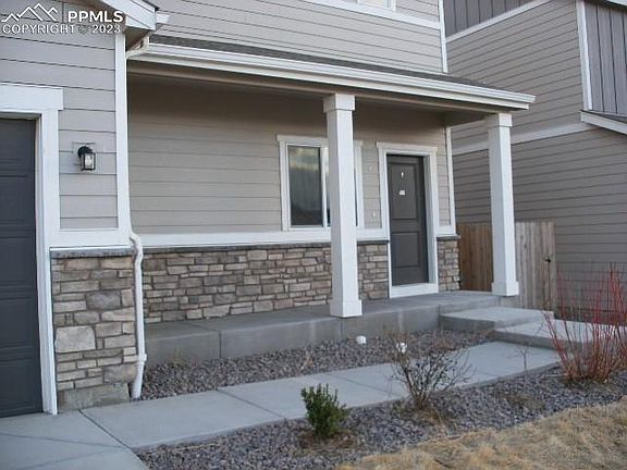 Gorgeous home.!! it is like a new home and was built in 2020. It is located in Lorson Ranch East. It is very close to the new Grand Mountain School. Giving you access to the playground and open spaces. Home was built in 2020 with a lot of upgrades, large covered porch, stone work on the front exterior, rear patio and large fenced backyard. The home features 2 stories, which includes 4 bedrooms, 2 1/2 bathrooms, and 2103 sq. ft. The upper level features the master suite with a 4-piece, double sink bathroom and a large over sized walk in closet. Also on that level is 3 additional bedrooms, an additional full bath and a large upstairs laundry room. The main level features 1/2 additional bathroom with open concept living, dining, and kitchen area. All stainless steel appliances with a double oven and a center island counter top rounds out the kitchen. Also features a 2 car attached garage and installed A/C unit. All carpet and pad has been removed from the upper level!