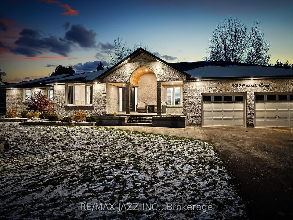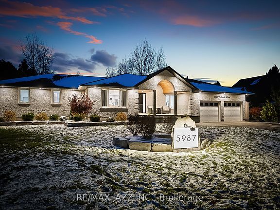 Welcome to your next chapter in Orono, where wide open skies meet high-end living. This fully renovated brick bungalow offers 2,013 sq ft of open-concept elegance, all on one level, set on a beautifully landscaped, tree-lined 3/4 -acre lot (0.74 ac) with farmland stretching out both in front and behind. Facing west, the home captures uninterrupted sunset views from the front porch and nearly every room. The exterior features interlock walkways, armour stone accents, a heated double garage, cedar tongue-and groove front entry (2023), and a spacious paved driveway (2022) with parking for six vehicles plus two in the garage. The backyard is designed for memory-making, featuring a large, landscaped patio that's perfect for relaxing, entertaining, or firing up the grill. A hot tub, fire pit, playhouse, and open space for trampolines or soccer nets complete the outdoor experience. Inside, the kitchen features a 6-burner gas stove and a built-in dual-climate wine and beer bar fridge integrated into the quartz island. Engineered hardwood and quartz surfaces run throughout, and all three bathrooms have been professionally renovated to a spa-like standard. The primary ensuite offers heated tile floors, a curbless Riobel shower, a wall-hung toilet, and a lighted niche. A main floor office with French doors and a closet offers flexibility as a fourth bedroom. Additional upgrades include 200-amp copper wiring, PEX plumbing, water softener and RO system, UV filtration (2025), Goodman furnace (2019), hot water tank (2023), and attic insulation (2022). The full-height basement with 9' ceilings is framed, plumbed, and wired, ready for finishing. Once completed, the home would offer over 4,000 sq ft of total living space. Whether you're upsizing, downsizing, or simply craving space and serenity, this home delivers luxury, lifestyle, and lasting value, just outside the city.