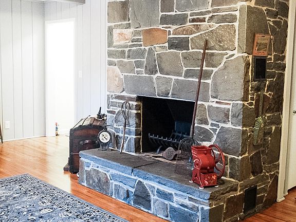 Lovingly Renovated! A beautiful stone walkway leads to this 1950's Ranch featuring all hardwood floors throughout, a large open and sunny living room with a stone fireplace, big eat-in kitchen with tray ceiling, granite counters, an island with a breakfast bar, all new appliances, a dining room with sliders to the rear yard, 3 bedrooms and a full bath with a jacuzzi tub to soak away your worries and a tiled shower. The new foyer/mud room with a high ceiling gives a warm and cozy entrance. Full unfinished basement with laundry area, plus a walk up attic. New roof, paved driveway. There is also a one car attached garage. Pretty yard with stone walls, some open lawn with mature trees at the back of the property. Come take a look today.